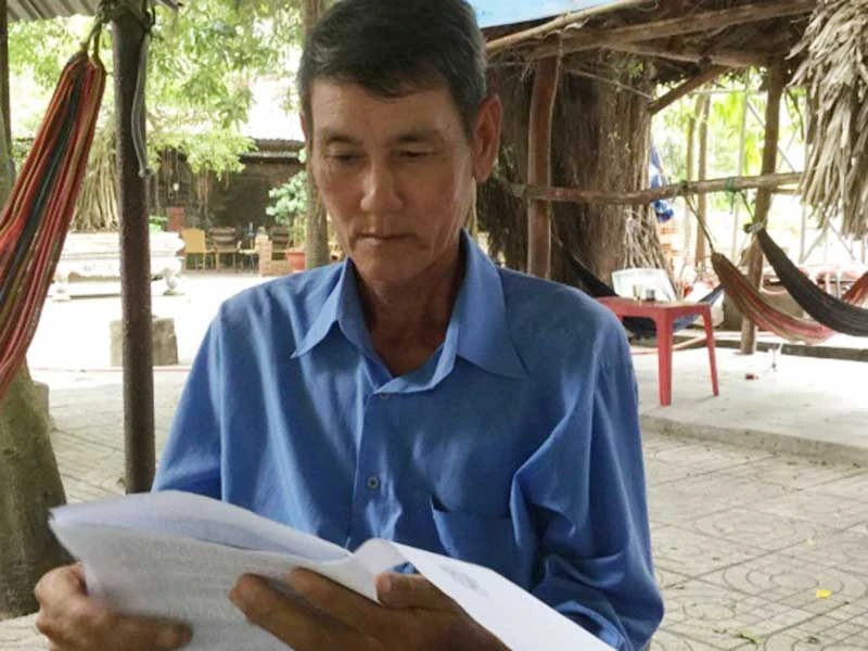 Ông Thắng (cha chị Hồng) mòn mỏi chờ UBND huyện thu hồi giấy chứng nhận cũ, cấp giấy chứng nhận mới cho con gái ông. Ảnh: NGUYỄN HIỀN