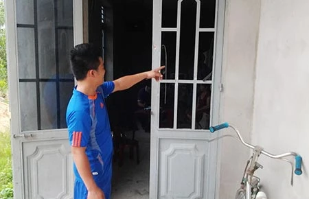 Cửa nhà của phu trầm NĐC bị nhóm người xin đểu đập vỡ kính. Ảnh: LỆ THỦY