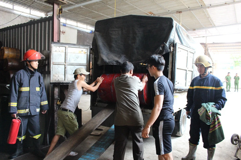 Lực lượng chức năng thu giữ số xăng không rõ nguồn gốc. Ảnh: K.THÁI