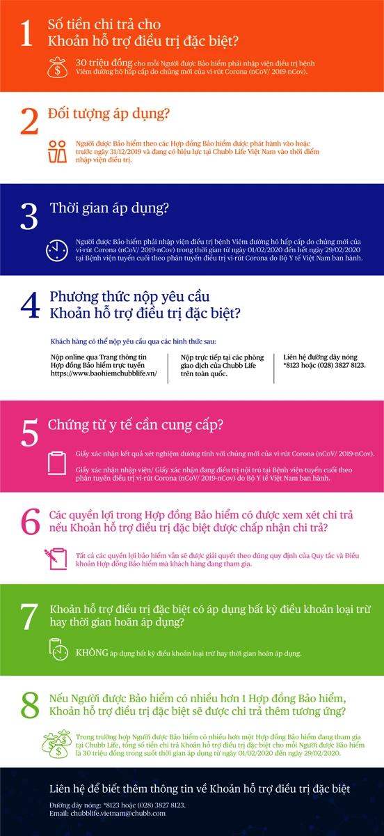 Typophraphic về “Khoản hỗ trợ đặc biệt điều trị nhiễm virus Corona” của Chubb Life Việt Nam