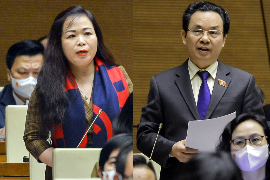 Đại biểu Quốc hội Vũ Thị Lưu Mai và Hoàng Văn Cường phát biểu