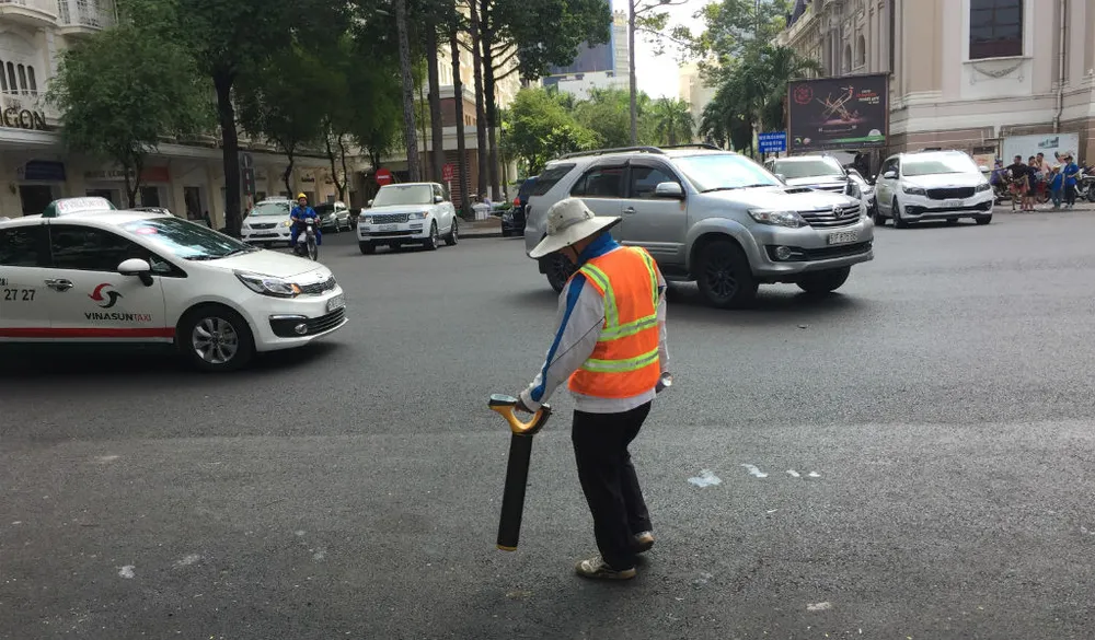Cũng theo ông Hòa, trong quá trình thi công các đường hầm, việc quan trắc, giám sát biến động địa chất và định vị chính xác, điều chỉnh bước đi của từng mét mũi đào TBM đã được thực hiện nghiêm ngặt. Do đó, sau khi khoan thành công hai đường hầm, qua quan sát, giám định, các công trình nổi tiếng bên trên như Nhà hát TP, khách sạn Caraven, Continental... hoàn toàn không bị ảnh hưởng. Trong ảnh, công nhân, kỹ sư đặt, rà thiết bị quan trắc liên tục trên mặt đường để giám sát, thẩm định mức ảnh hưởng do việc đào ngầm bên dưới....