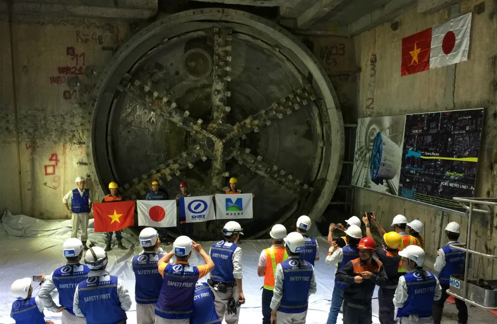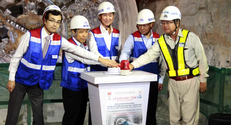 Đúng 9 giờ sáng 29-6, công nhân, kỹ sư của Ban Quản lý đường sắt đô thị TP và Liên danh nhà thầu Shimizu - Meada (Nhật Bản) vui mừng đón đầu đào TBM về đến ga Nhà hát TP. Đường hầm thứ hai, phía Tây của tuyến metro số 1 được bắt đầu khoan ngầm từ ngày 26-1-2018. Đường hầm đi từ ga Ba Son đến ga Nhà hát TP dài 781 m, đường kính mũi đào 6,79 m, độ sâu của đáy dưới của đường hầm là hơn 15 m.