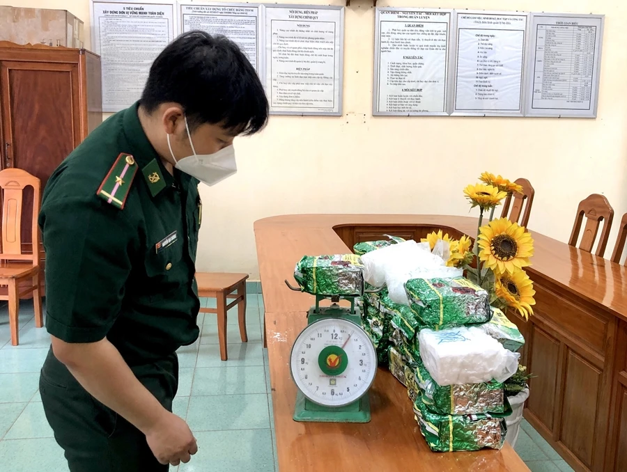 Bộ đội Biên phòng kiểm đếm tang vật. Ảnh: TRUNG THÀNH
