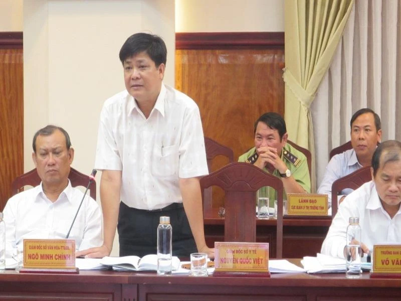 BS Nguyễn Quốc Việt, Giám đốc Sở Y tế, báo cáo tình hình tại cuộc họp UBND tỉnh.