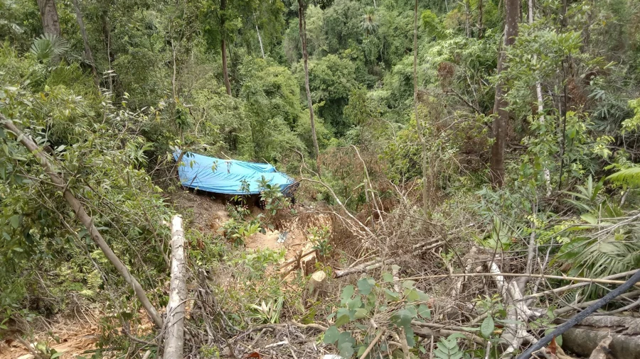 Tại hiện trường, lực lượng chức năng phát hiện nhiều đường hầm đã được đục khoét, nhiều lán trại và các phương tiện, dụng cụ để phục vụ đào đất, đãi tìm vàng.