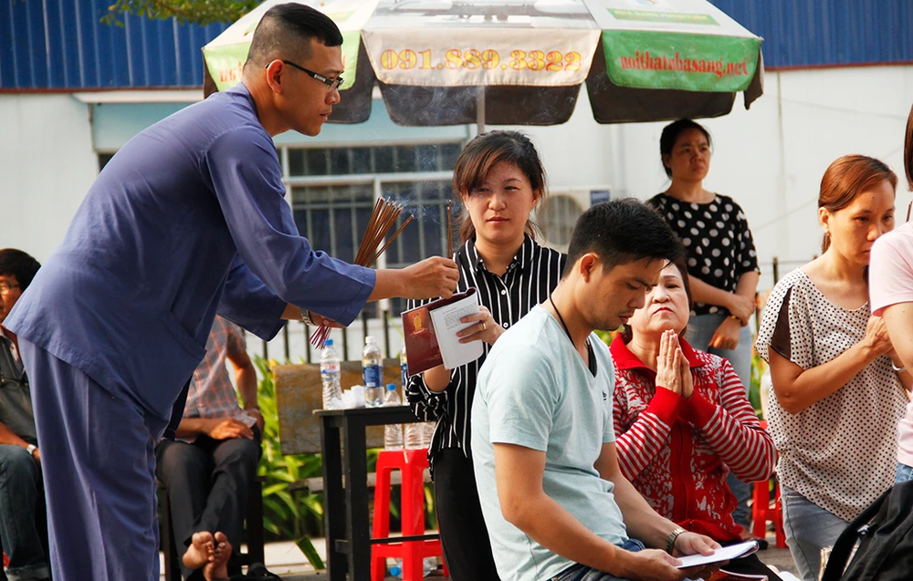 Lễ cầu siêu do cư dân tự đứng ra tổ chức và mời các sư thầy đến.