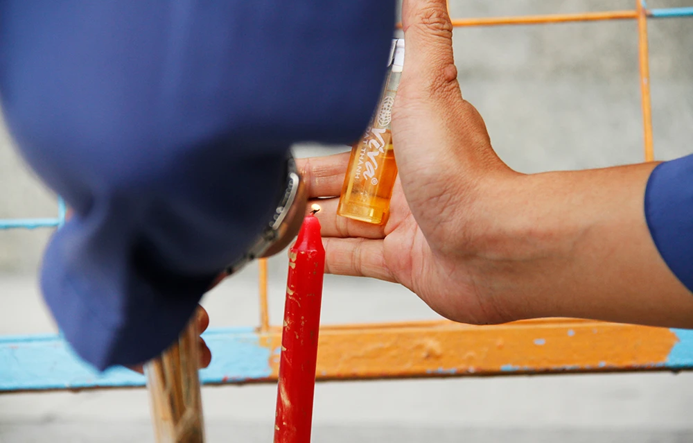 Do trời có gió khá to, những cây nến được thắp lên nhưng thi thoảng lại tắt.