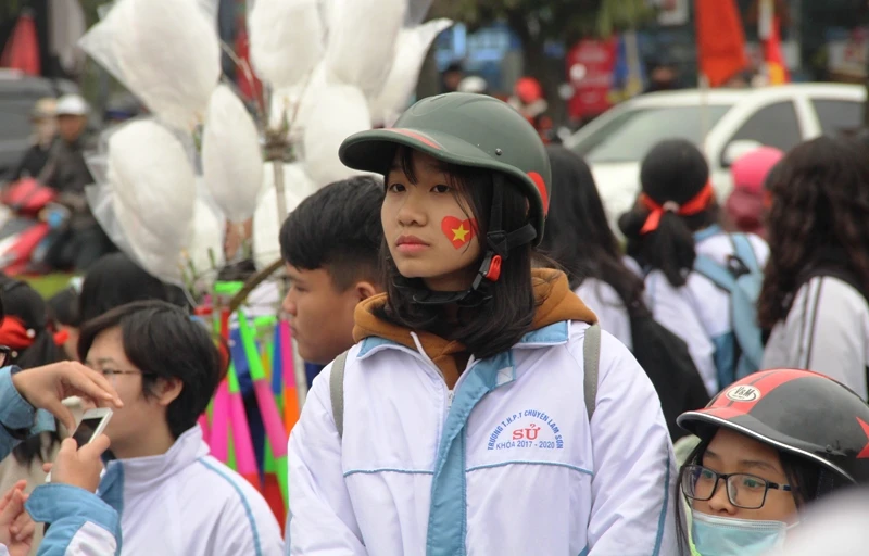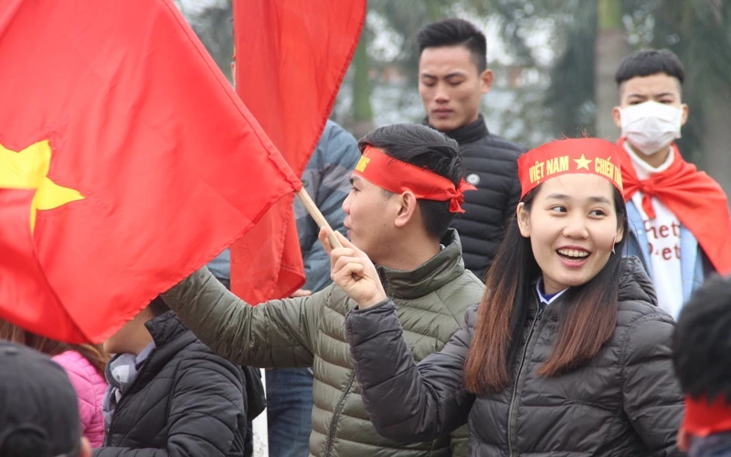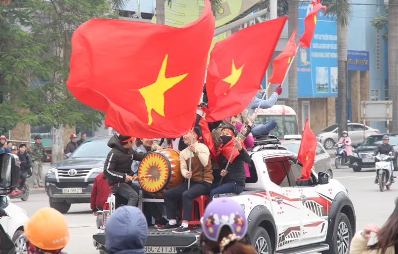 Lá cờ đỏ sao vàng tung bay phấp phới cùng với tiếng reo hò "Việt Nam vô địch" đã chạm đến trái tim của nhiều người hâm mộ xứ Thanh đang chờ đón các tuyển thủ.