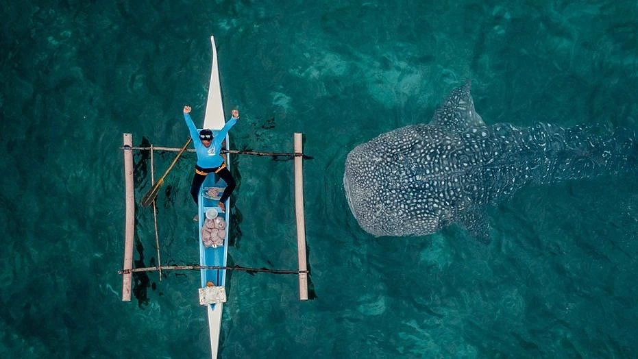 Bức ảnh được chụp bởi nhiếp ảnh gia Dimitar Karanikolov, 42 tuổi tại một vùng biển Oslob trên đảo Cebu, Philippines. Bức ảnh được Karanikolov chụp bằng flycam và ông thì đứng cách đó khoảng 270 m.