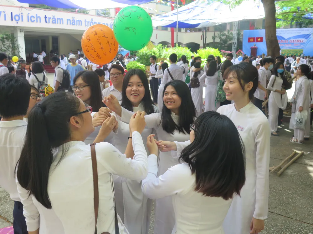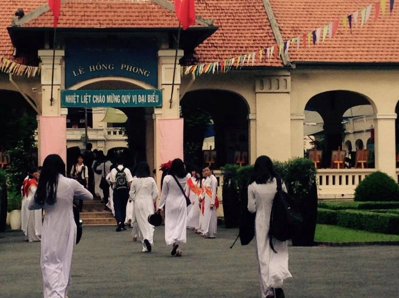 Tại TP.HCM, ngôi trường có truyền thống lâu đời Lê Hồng Phong cũng hân hoan đón chào các em học sinh trong ngày tựu trường. Ảnh: MINH TÂM