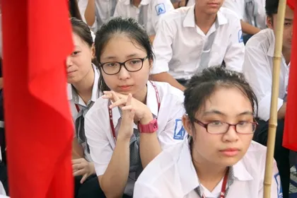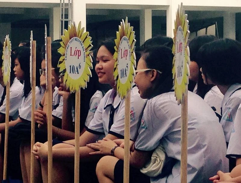 Hàng trăm học sinh Trường THPT Nguyễn An Ninh. Ảnh: MINH TÂM
