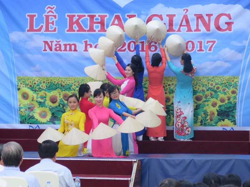 Các cô giáo biểu diễn mừng ngày khai trường, đón học sinh thân yêu. Ảnh: PHẠM ANH