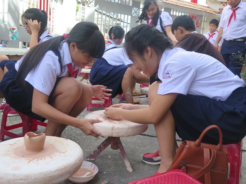 Tình cô trò thắm thiết được các giáo viên và học sinh thể hiện rất gần gũi. Ảnh: PHẠM ANH