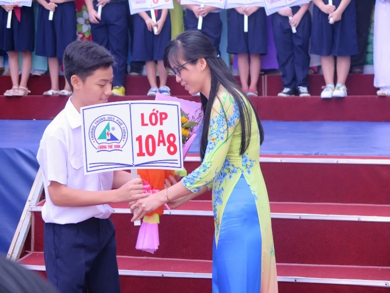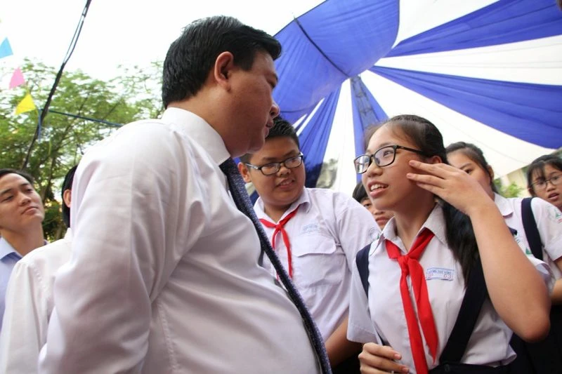 Bí thư Đinh La Thăng dự lễ khai giảng ở Trường THPT Lương Thế Vinh (quận 1, TP.HCM). Ảnh: PHẠM ANH