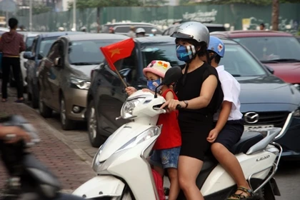 Phụ huynh dậy sớm đưa con em đến trường. Ảnh: PHI HÙNG