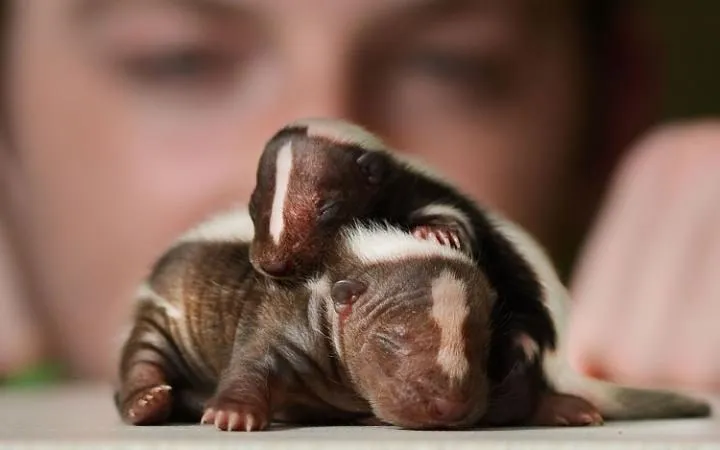 Khoảnh khắc đáng yêu của hai con chồn hôi con. (Nguồn: SWNS)