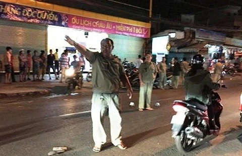 Khi vừa đến trước cây xăng, một nhóm thanh niên khoảng tám người trên bốn xe máy đuổi tới, tấn công anh Phong và Phương.