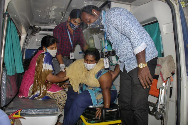 Bệnh nhân được đưa đến bệnh viện tại bang Andhra Pradesh (Ấn Độ) sau khi mắc căn bệnh không rõ nguyên nhân. Ảnh: AP