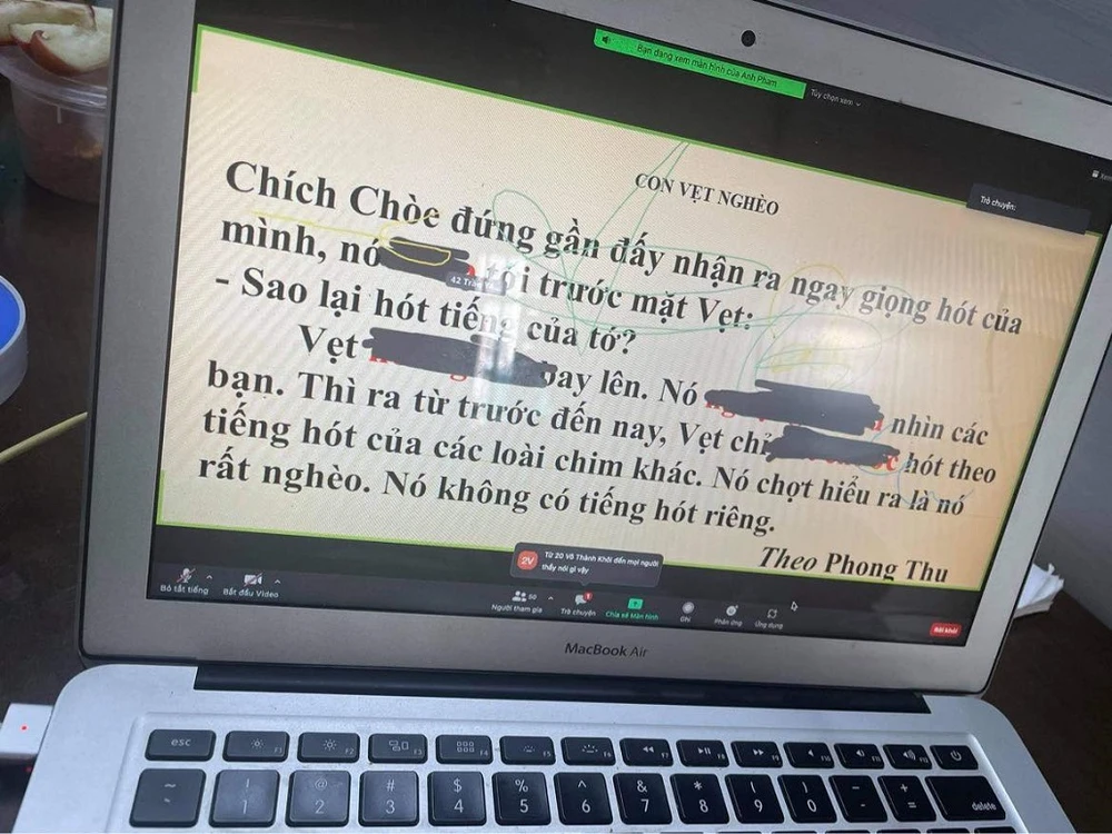 Trong tiết Tiếng Việt, khi thầy giáo đang sửa lỗi những từ dễ sai chính tả, nhiều em đua nhau tô đen những chữ đó trên màn hình, khiến cả lớp không thể nhìn rõ. Một buổi khác, trong lúc cả lớp đang học, một HS cầm ly trà sữa lên uống, có bạn bật mic lên hỏi: "Trà sữa mua đâu ngon vậy? Mình thèm quá".