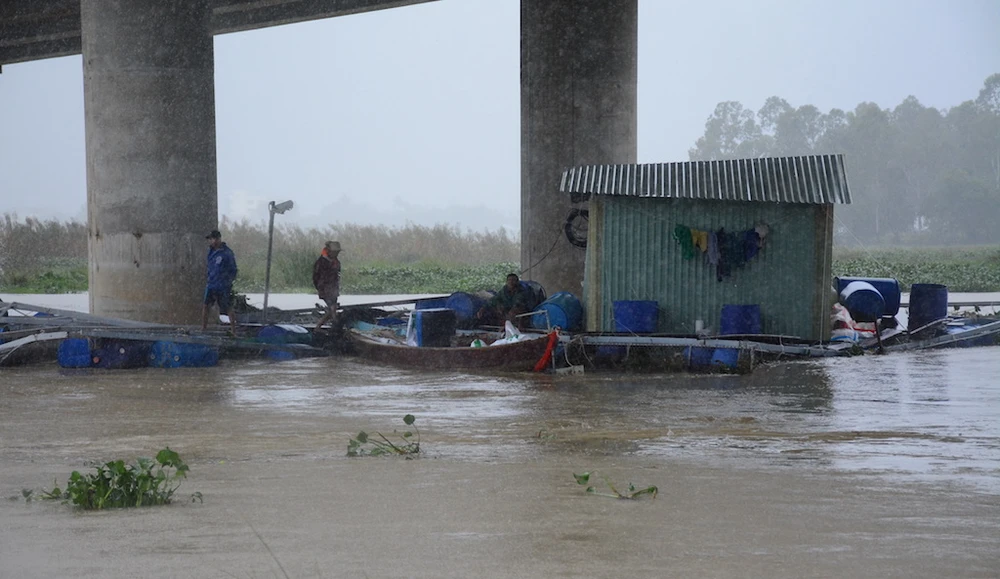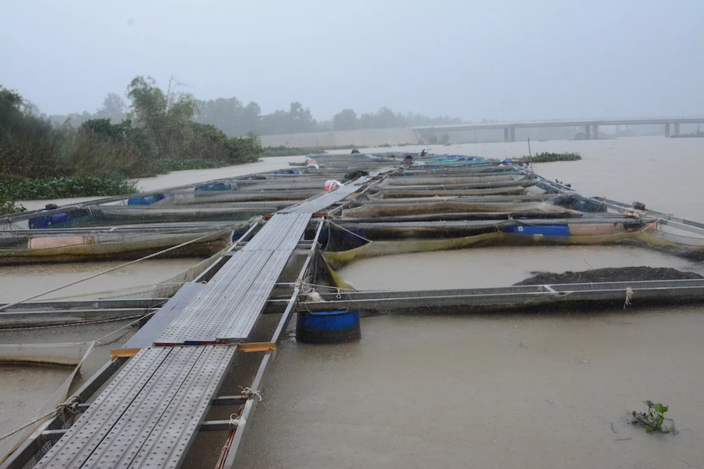 Cơn mưa kéo dài đêm qua kèm với gió giật mạnh khiến 40 lồng cá diêu hồng của anh Nguyễn Xuân Ngọc (41 tuổi, trú phường Trường Xuân, TP Tam Kỳ) đứt dây neo, cuốn theo dòng lũ.