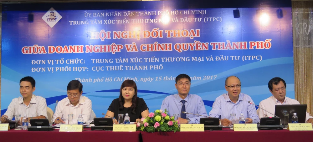 Lãnh đạo Cục Thuế TP.HCM và Trung tâm Xúc tiến Thương mại Đầu tư TP (ITPC) trả lời các thắc mắc của cộng đồng DN.