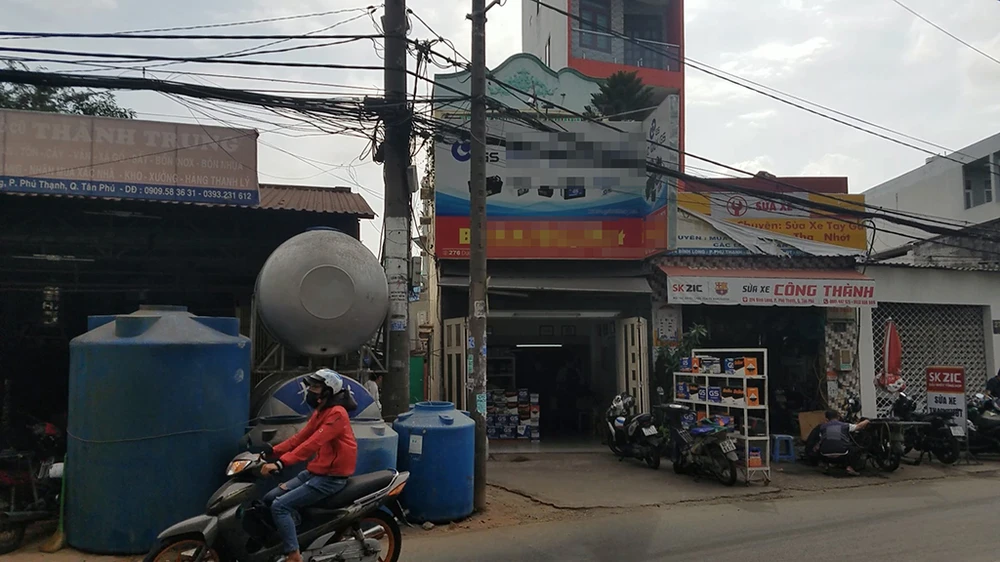 Nơi xảy ra vụ việc là tiệm ắc quy trên đường Bình Long, quận Tân Phú. Ảnh: HT