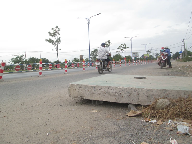 Khối bê tông nguy hiểm trên đường