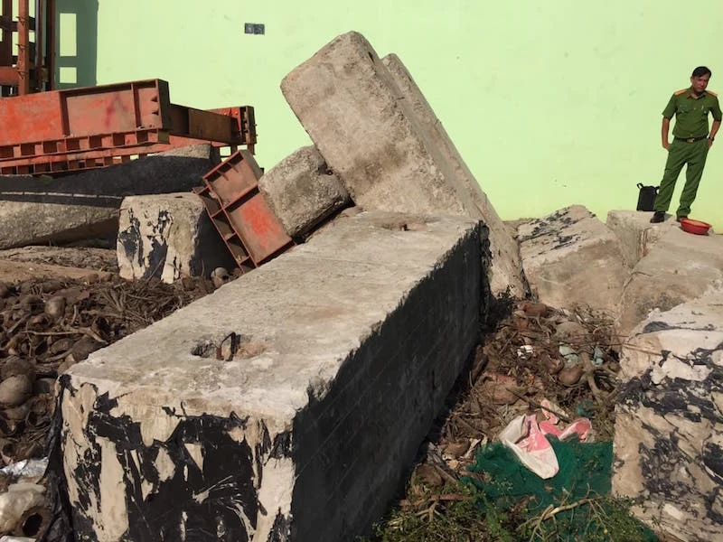 Hậu quả, ông Bảo bị khối bê tông đè lên người và tử vong.