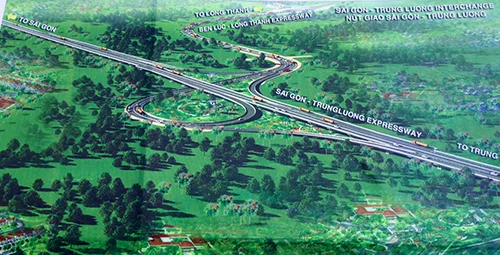 Nút giao giữa tuyến cao tốc Bến Lức - Long Thành với tuyến cao tốc TP.HCM -Trung Lương tại huyện Bến Lức (Long An). Đây cũng là điểm đầu của dự án cao tốc vừa được khởi công.