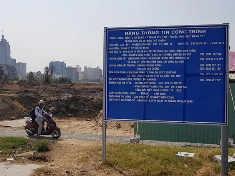 Ghi nhận của PV trưa 16-3, tại khu chức năng số 1 KĐT Thủ Thiêm cho thấy biển báo công trình đã được dựng với các thông tin cụ thể về dự án.
