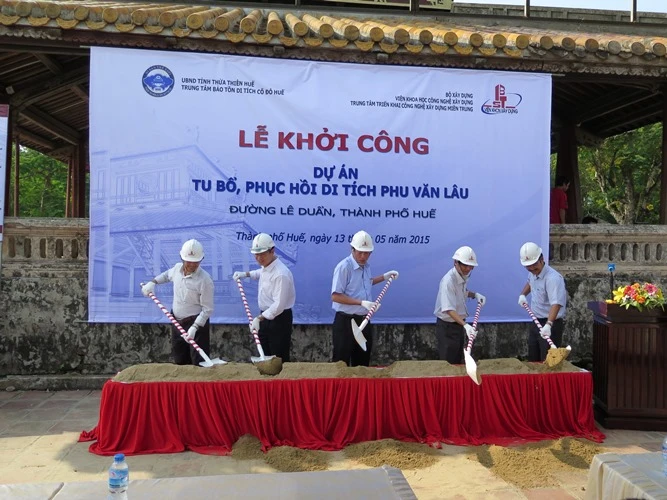 Trước đó, rạng sáng ngày 15-5, di tích Phu Văn Lâu bất ngờ bị sập góc trái ở phía sau, Trung tâm Bảo tồn di tích cố đô Huế đã tiến hành kiểm tra phong tỏa hiện trường, gấp rút khắc phục vị trí bị đổ sập tạm bợ bằng gỗ.