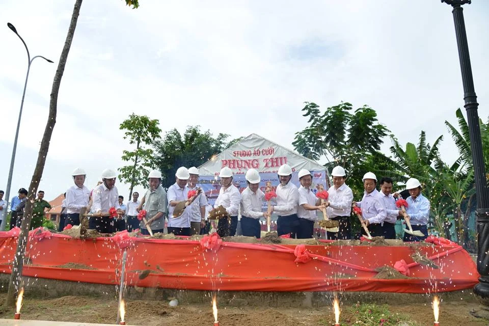 Nghi thức khởi công cây cầu đi vào Khu di tích căn cứ Xứ ủy và Ủy ban Hành chính kháng chiến Nam bộ.