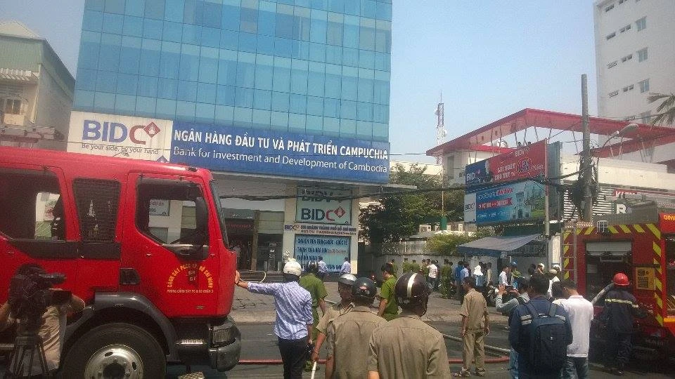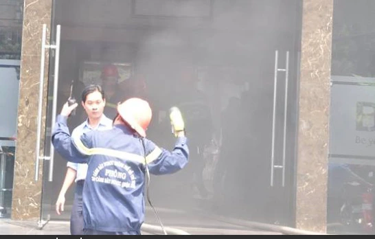 Thời điểm trên, người dân thấy khói bốc lên tại ngân hàng có địa chỉ trên. Họ liền hô hoán và báo cho xung quanh. Lúc này, hàng chục nhân viên trong tòa nhà hốt hoảng tháo chạy ra ngoài thoát thân. Bảo vệ cố kéo nước, bình CO2 tìm cách ứng cứu.