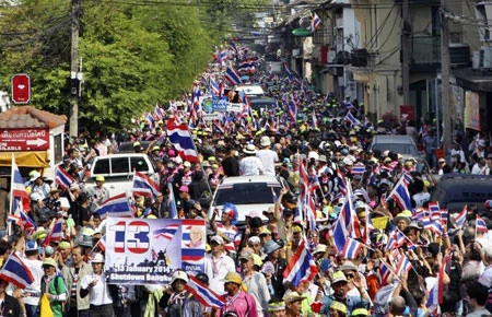 10 giờ sáng 5-1, hàng ngàn người biểu tình chống chính phủ do Tổng Thư ký Ủy ban Cải cách dân chủ nhân dân Suthep Thaugsuban dẫn đầu đã bắt đầu tuần hành trên đường phố thủ đô Bangkok.