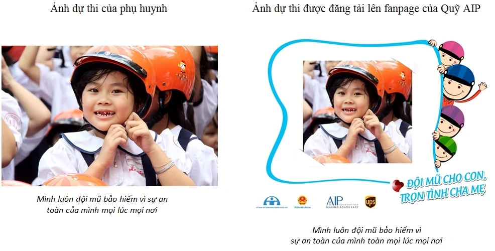 Cha mẹ/bé tham gia cuộc thi qua website: https://www.facebook.com/Aipvietnam. Vào mục tin nhắn (message) gửi 1 ảnh dự thi phù hợp chủ đề “Đội mũ cho con, trọn tình cha mẹ” và lời bình không quá 25 từ, kèm thông tin cá nhân: Họ tên người dự thi; số điện thoại liên lạc;địa chỉ email; nơi cư trú.