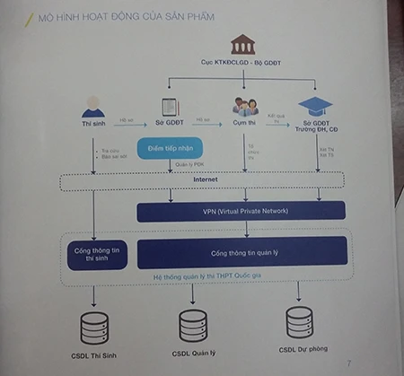 Cụ thể, hệ thống cho phép quản lý thống nhất toàn bộ dữ liệu các khâu chính trong một kỳ thi THPT quốc gia gồm: quản lý hồ sơ đăng ký, tổ chức thi, quản lý kết quả thi, xét tuyển tốt nghiệp và xét tuyển ĐH-CĐ thay thế cho công tác quản lý thủ công và phân tán trước đây. Toàn bộ dữ liệu được tập trung và trực tuyến, đảm bảo tính chính xác, minh bạch, cập nhập và đồng bộ.