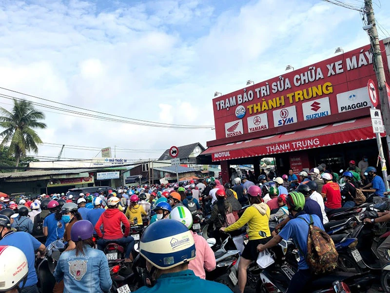 Giao thông hỗn loạn trên đường Lò Lu. Ảnh: ĐÀO TRANG