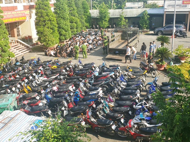 Bị lực lượng công an truy đuổi từ nhiều hướng, các "quái xế’ đã tìm cách tháo chạy. Lực lượng chức năng đã bắt giữ 90 thanh niên cùng 110 xe máy, trong đó có nhiều xe không gắn biển số và nhiều xe đã thay đổi kết cấu.
