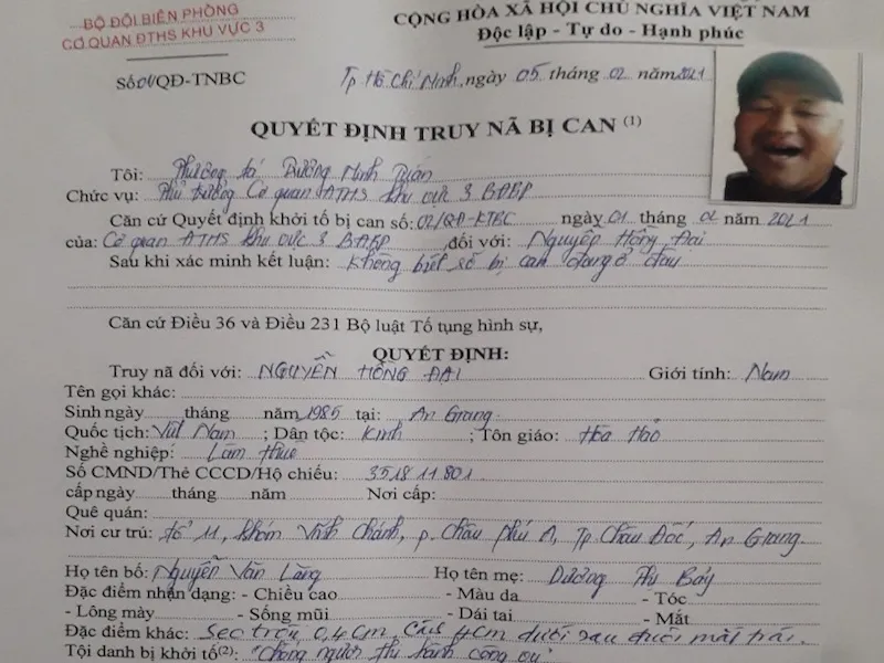 Lệnh truy nã bị can Nguyễn Hồng Đại. Ảnh: LĐ