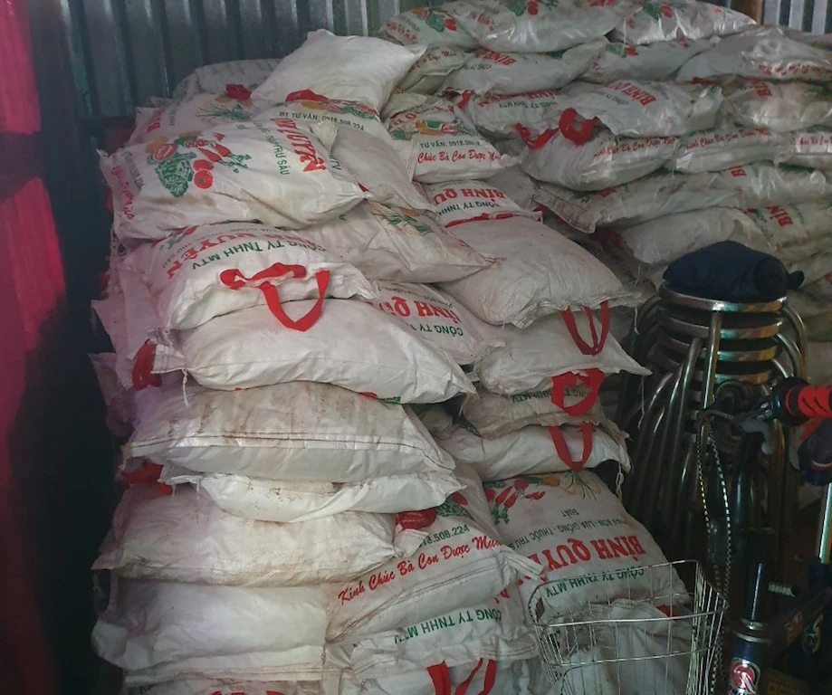 Số phân bón vi phạm công an thu giữ tại công ty hai vợ chồng bị can. Ảnh: HD