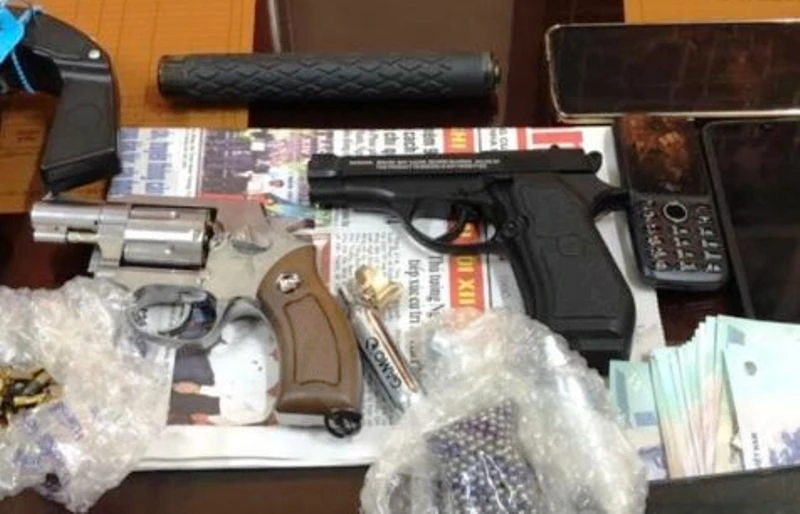 Tại hiện trường, lực lượng chức năng đã thu giữ ba khẩu súng ngắn (hai khẩu dạng K59 và một khẩu dạng súng Cold), 698 viên đạn các loại, bảy bình bơm kích khí nén CO2 cho súng bắn đạn tự chế, một bình xịt hơi cay, hai gậy ba khúc bằng kim loại...