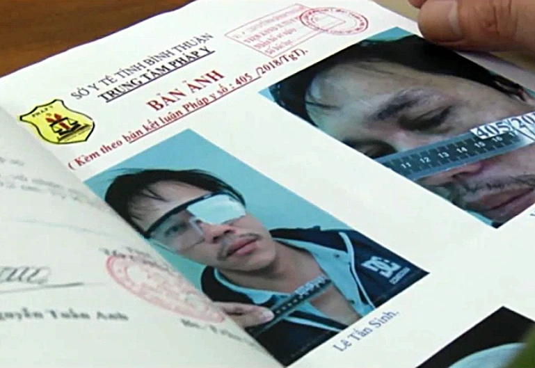 Bản ảnh của nạn nhân Lê Tấn Sinh bị đâm mù mắt khi chưa kịp trả nợ vay.