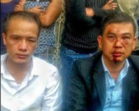 Luật sư Luân (trái) và luật sư Nam sau vụ hành hung.