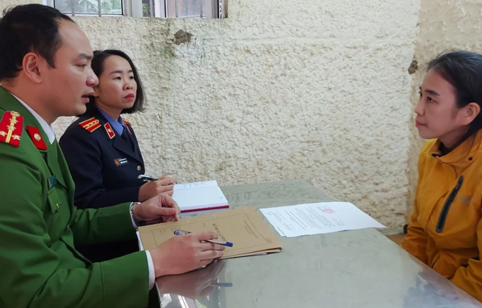 Bị can Mai Thị Hoa (bên phải). Ảnh: Công an Hà Tĩnh