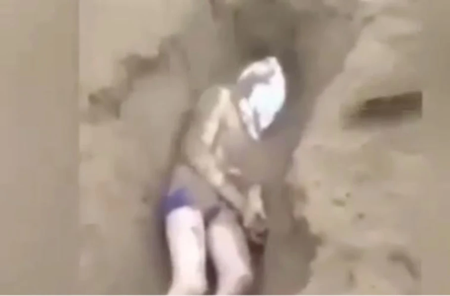 Nạn nhân VQV. (trú Hà Tĩnh) bị nhóm Dương bắt giữ và "chôn sống". Ảnh cắt từ video clip.