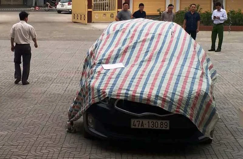 Công an khám xét xe ô tô BKS 47A - 130.89. Ảnh: CTV.