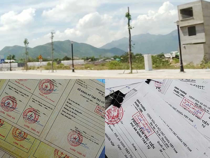 Một góc dự án khu đô thị Hoàng Long và các loại giấy tờ giả dùng vào việc cấp đất tái định cư do công an thu giữ. Ảnh: TL