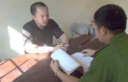 Bị cao Nguyễn Thanh Sơn tại cơ quan công an.