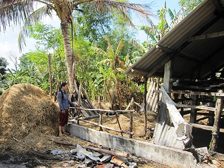 Một người dân ở thôn Hướng Phương, xã Quảng Phương (huyện Quảng Trạch) chỉ địa điểm cây rơm nhà mình bị đốt.